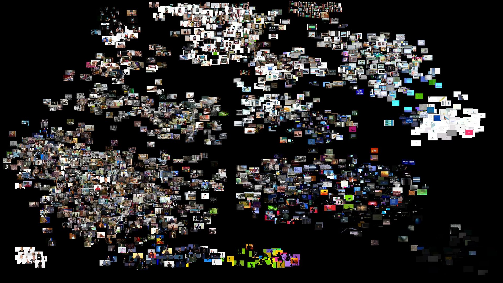 Using machine learning techniques based on principles of human cognition—including scene context, object recognition and event prediction—this piece is a hybrid of computer-organized and human-selected imagery in an attempt to surface correlations across disparate digital artifacts.
